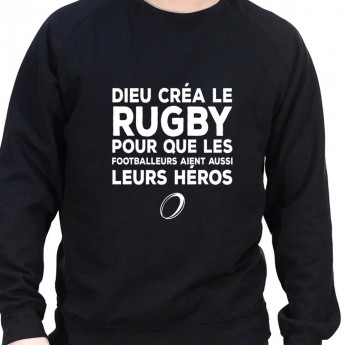 Découvrez le nouveau Sweat Crewneck dieu crea le rugby car meme les footballers on besoin de héros – Sweat Crewneck Homme Rugby de la collection spéciale